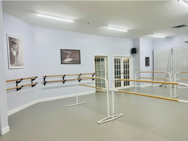Both of our studios are equipped with Harlequin flooring, the ballet gold standard for safe training. Studio A offers a dance wear boutique, changing room, reception, kitchenette and bathroom. Studio B; our large studio, offers a student lounge with full kitchen, 5 changing rooms, 3 bathrooms, reception & Cafe area with a dance wear boutique. Please inquire about renting our beautiful spaces